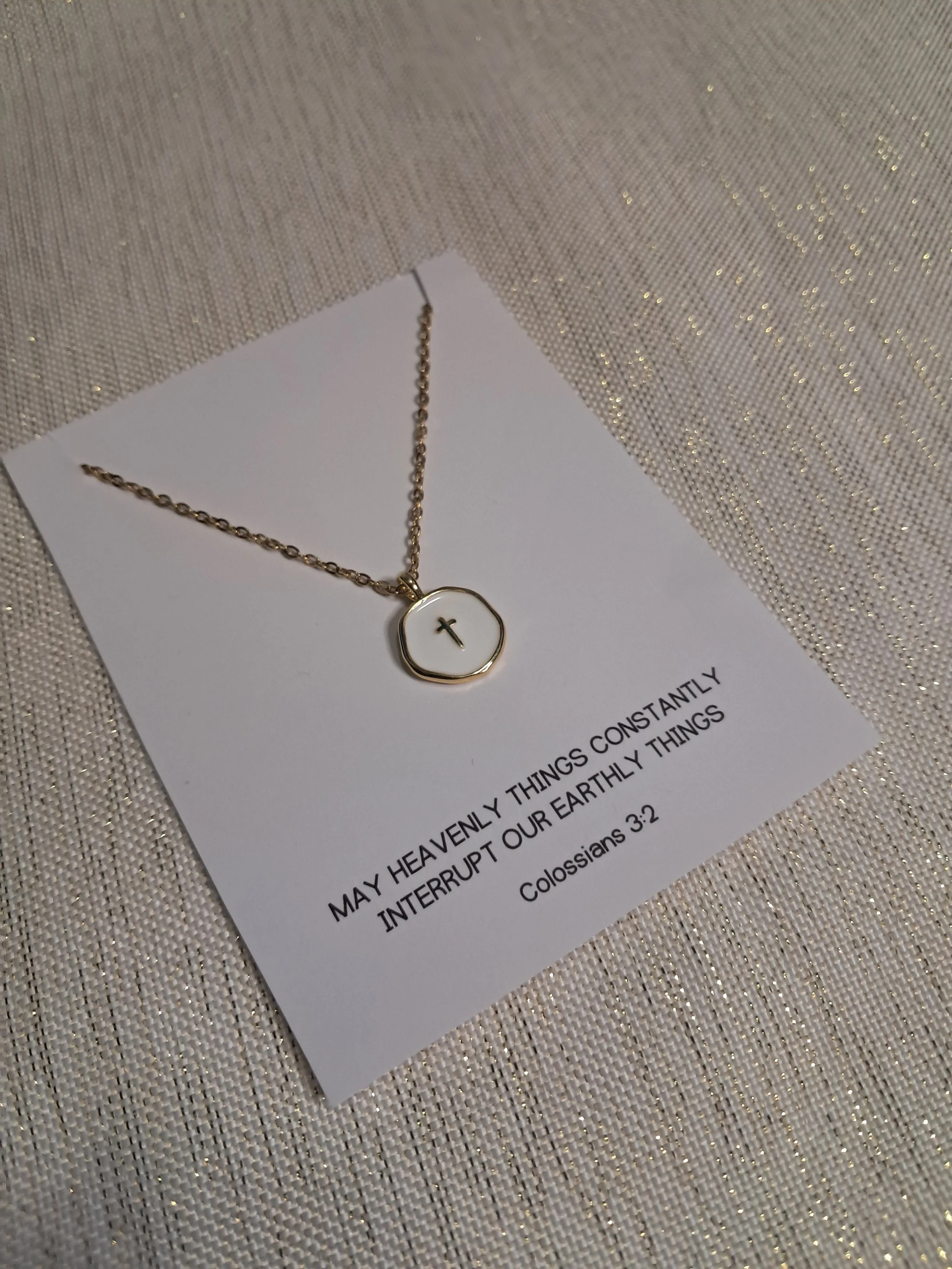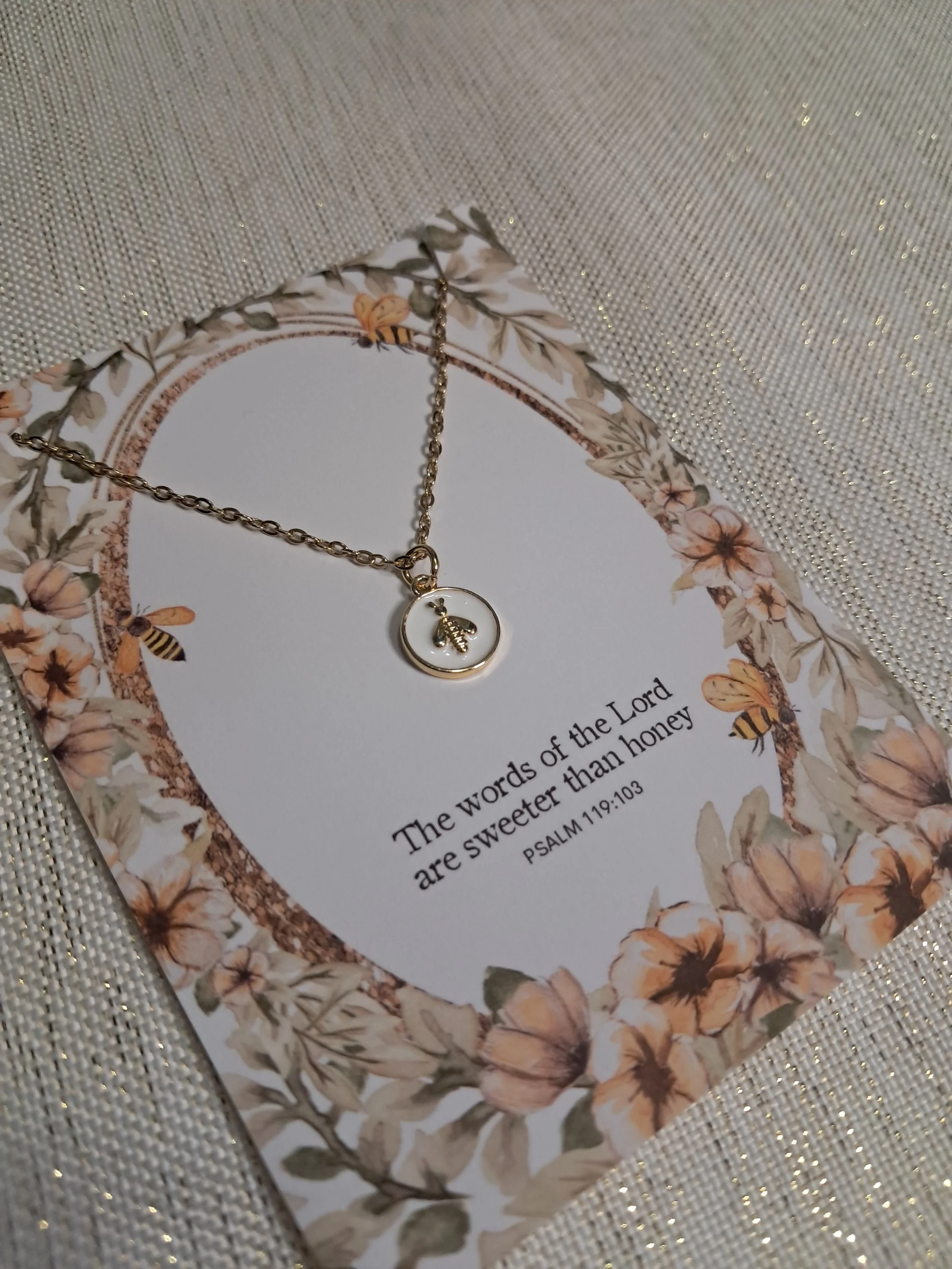 Jewelry Colossians 3:2 Necklace $14.00 Honey Necklace $14.00 Everything in Love Necklace $14.00 He is Good Necklace $14.00 Consider the Birds Necklace $14.00 Wildflower Necklace $14.00 Psalm 1:3 $13.50 John 15:8 $13.50